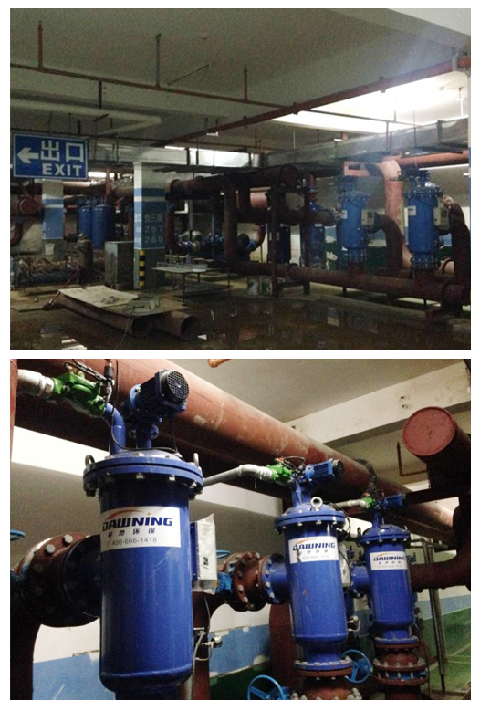 南湖名都項目中,作為綠色節能示范工程的水源熱泵系統,在運行過程中產生的固體雜質顆粒,需要進行過濾處理以保護整個系統平穩運行。