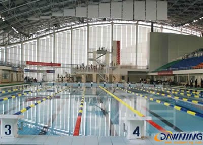 游泳跳水的池水消 毒系統采用了國際標準的臭氧消 毒處理系統,水處理系統堪比水立方,保證池水清潔衛生,節省人力百分之90節省補水百分之80節電百分之80 節省熱能百分之80,該設備節約能耗,運行性能,環保指標均達到國際水平。泳池的水溫為26℃±1℃。跳水池采用國際制波系統,減少運動員身體觸水時的壓力,避免意外受傷。